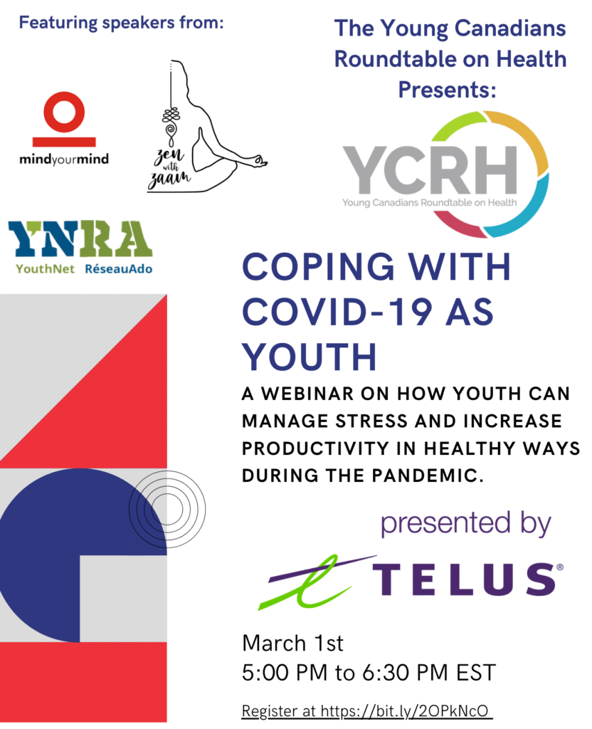 The Young Canadians Roundtable on Health will be hosting their second webinar! Registration is now open for The YCRH Series: Coping with COVID-19 as Youth which will be happening on Monday, March 1, 2021 at 5 p.m. EST and will primarily feature organizations and youth speakers from Ontario including YouthNet/RéseauAdo and mindyourmind.ca. Our speakers will […]